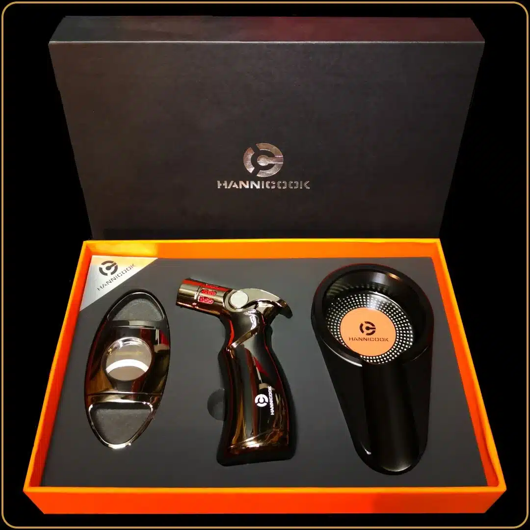Glavni deo seta čini snažan brener upaljač sa četiri plamena koji omogućava savršeno paljenje tompusa. Dodatno, tu su i precizni sekač za cigare i teška, stabilna pepeljara od metala. Za slične ideje pogledajte i poklone za ljubitelje cigara koji su savršeni za sve prilike.