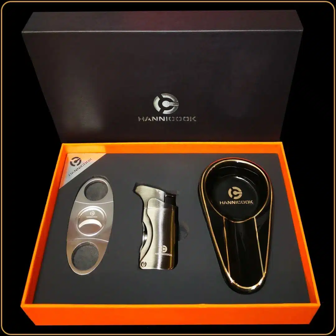 U elegantnoj crnoj gift kutiji nalazi se potpuni trio za savršeno uživanje — precizni metalni sekač, keramička pepeljara i moćan upaljač sa bušačem. Ovo je poklon koji ostavlja utisak već pri prvom otvaranju.