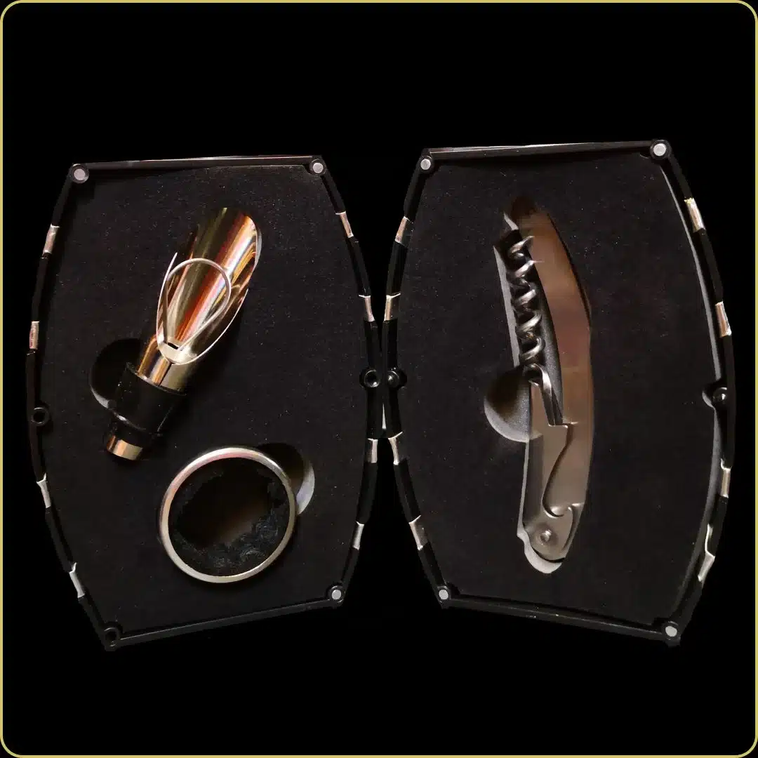 Ova kombinacija pribora garantuje da ćete svaku flašu vina otvoriti i poslužiti kao pravi profesionalac. Uz poklon korpe sa vinom iz naše ponude, set dobija još veću vrednost i postaje kompletan doživljaj za slavlje ili posebnu priliku.