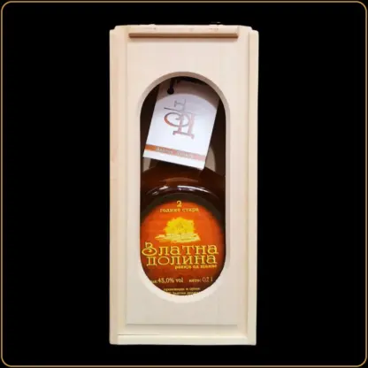 Poklon sadrži bocu rakije od šljive Zlatna Dolina, staru 2 godine, zapremine 0.7 l, upakovanu u elegantnu drvenu kutiju.
